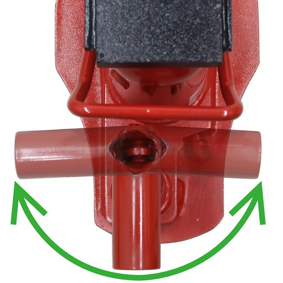 ジャッキには専用の操作レバーが付属しています。操作性を高めるため、太めの丸パイプを採用し、握り部分にはゴムグリップがついています。2本のパイプをロック機構により接続する形状になっているので、収納時にはコンパクトになります。
