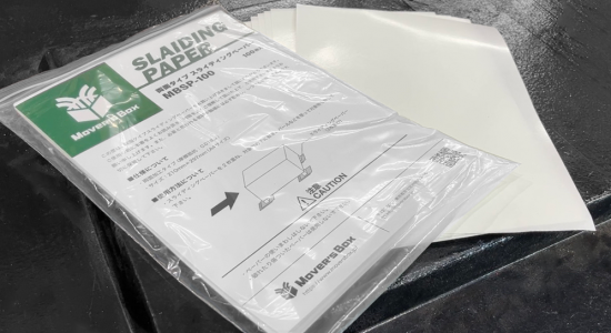 大型工作機械などの移設や位置決めをする際に、重量物の下に重ねて敷き、力を加えることで、重量物をスライディング(横移動)させることができるペーパーです。